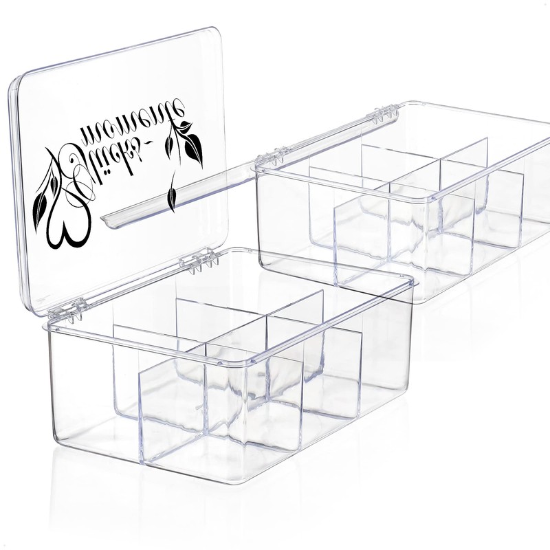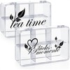 com-four® 2 x Storage Boxes for Tea and Tea Bags - Transparent Plastic Tea Box with 6 Compartments - Tea Box for Tea Storage (Pack of 2 - Happiness Moments & Teatime)