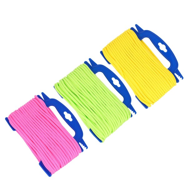 COM-FOUR® 3X 30m Allzweckseil mit Aufspulvorrichtung, vielseitige Maurerschnur, Flechtleine in auffälligen Farben [Auswahl variiert]