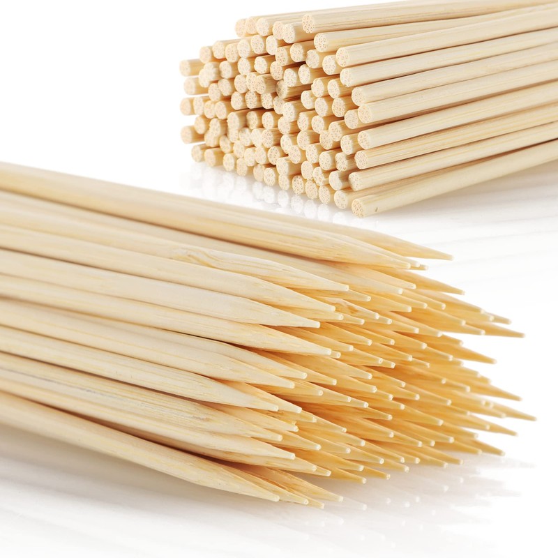 • Sharp end: thanks to the extra tip on the wooden sticks, raw meat, vegetables, marshmallows, stick bread or other can be skewered without much effort