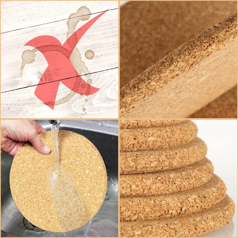 - For everyday use: the round cork coasters are ideal for placing hot pots, pans and casserole dishes, so that the dining table or worktop in the kitchen will not be damaged!