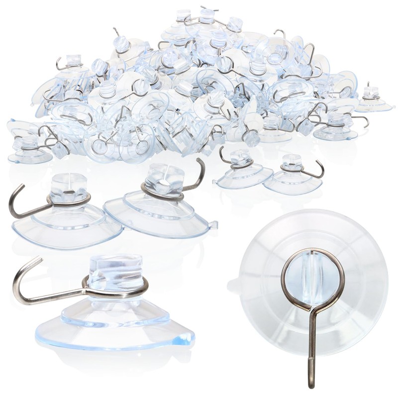 - SCOPE OF DELIVERY: 80x suction cup holder // Colour: transparent // Dimensions: suction surface: Ø 3.5 cm, hooks: 3 x 1 cm // Material: rubber, metal