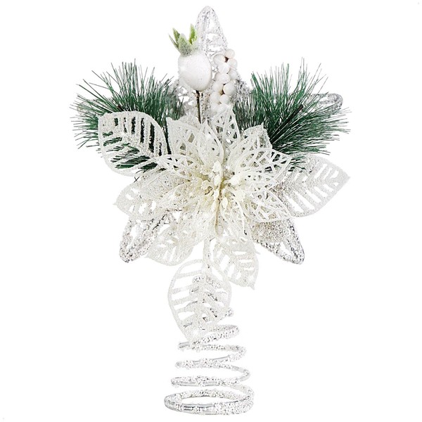 com-four® Christmas decorative star – Christmas decoration star made of metal with ornaments – standing Christmas star with glitter (white/21.5 cm, with flowers)