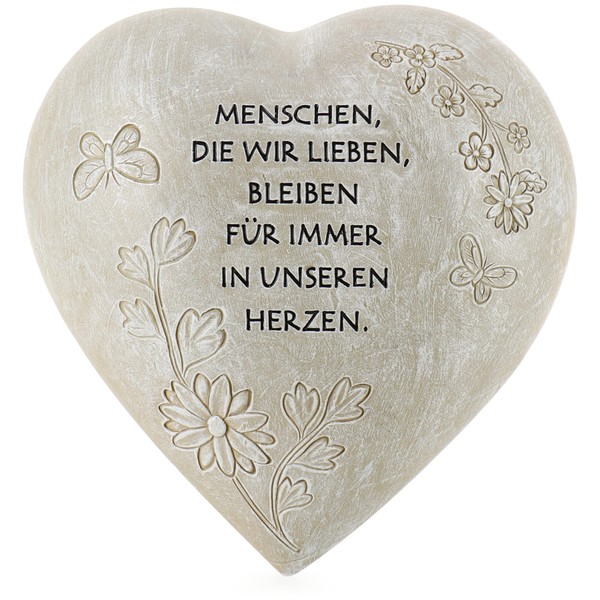 - Box contents: 1x grave ornament. Dimensions: Approx. 10.5 x 9 x 8.5 cm. Material: Plastic. Colour: Grey. Engraving: "Du lebst in unseren Herzen" (German text).
