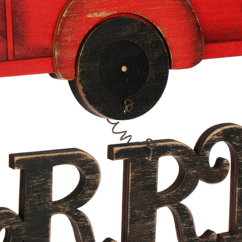 - Box contents: 1 x hanging decoration. Dimensions (W x H x D): approx. 33 x 29.5 x 0.7 cm. Material: Wood, metal. Colour: Red, black, white, brown, yellow. Motif: "Merry Christmas".