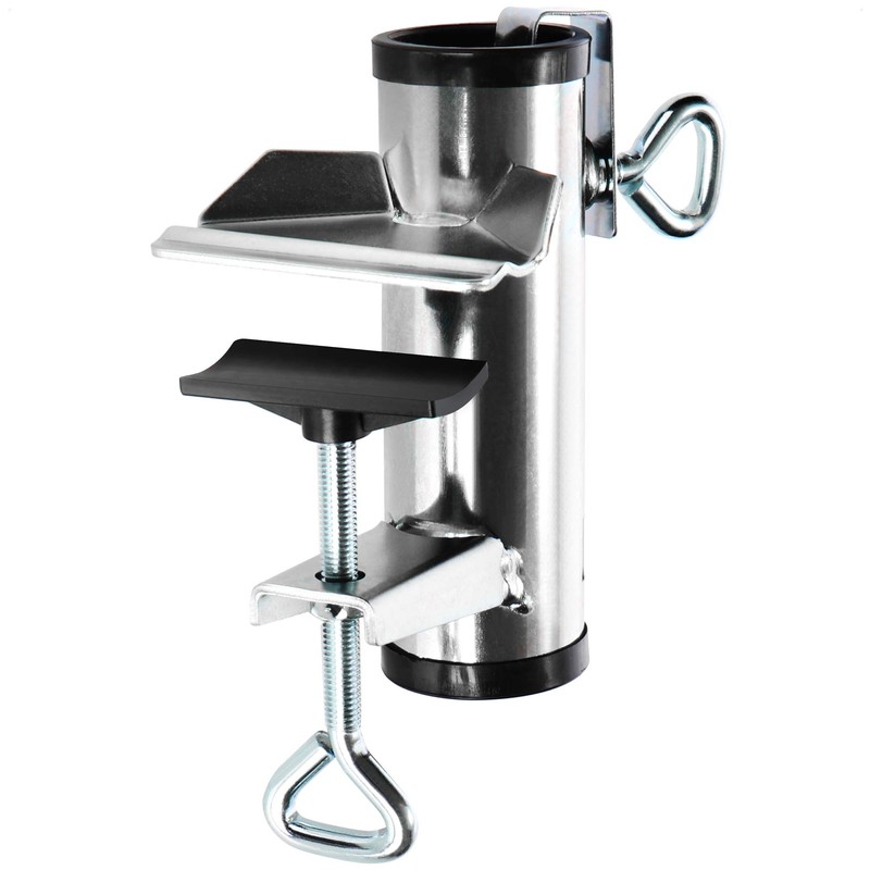 Can be mounted on different pole dimensions as well as railings and tables thanks to the locking screw.