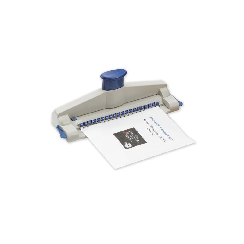 This Comb Binding Machine is made of steel and plastic. It will punch holes in up to 3 sheets of paper at a time. It will quickly and easily bind up to 100 sheets using a 1/2" comb. The paper inlet is 11-7/8" wide. Ten (10) 3/8" binding combs are included.