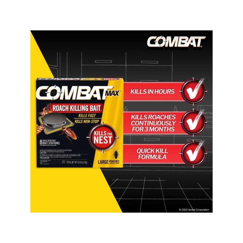 - Roaches take the bait back to the nest. Combat Max for Large Roaches kills roaches in a Domino-Effect, and eliminates at the source of the infestation.