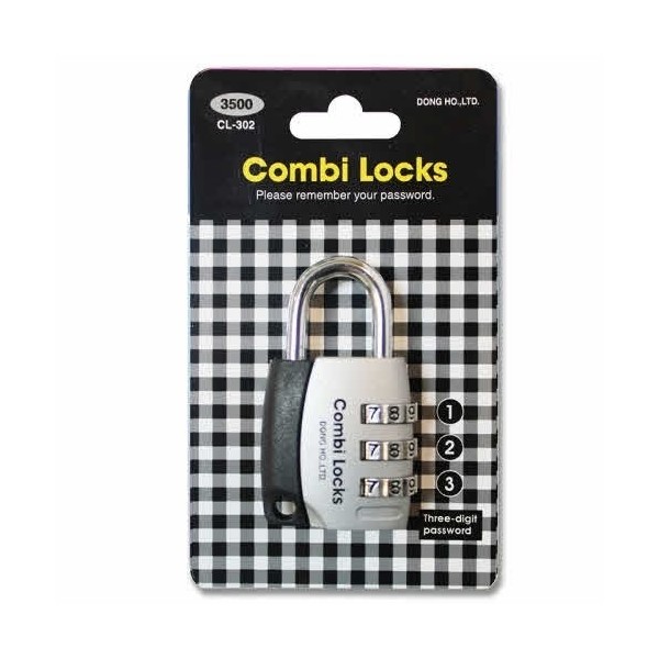 Combi-Lock CL-302 Black 3-Wheel Locker Combination Lock 72317 2ea