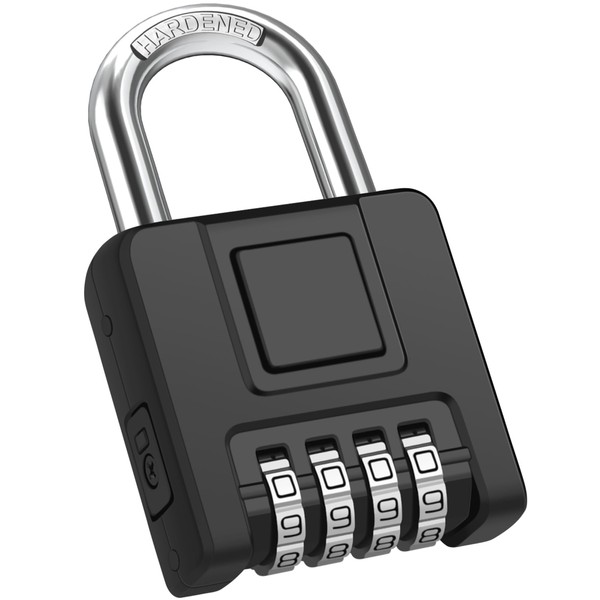Combination Lock, 4 Digit Combination Lock, Heavy Lock with Combination Code, One Button Release, Stainless Steel Padlock, Robust, Safe, Waterproof for Locker, Shed, School, Gates - Black