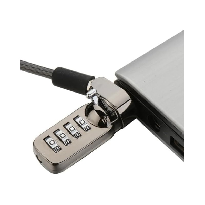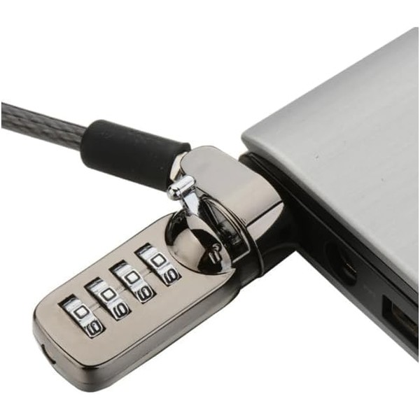 - The steel cable is adjustable in length for easy storage and allows for quick and easy attachment of the lock in the security slot.