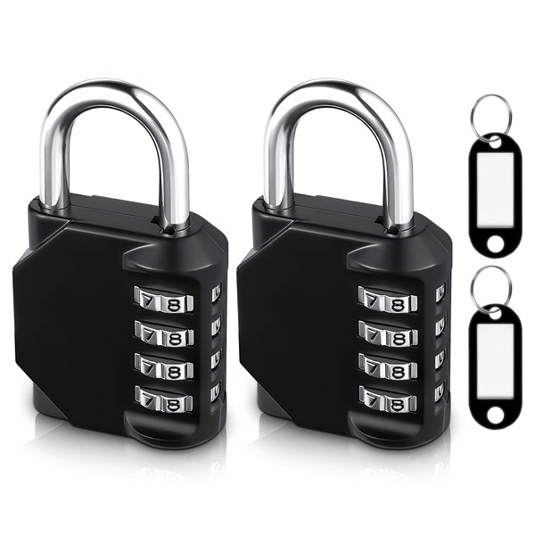 Combination Padlock, 2 Pcs 4 Digit Resettable Security Padlock, Outdoor Waterproof Padlock for School, Gym Locker, Gate, Fence, Toolbox (Black)