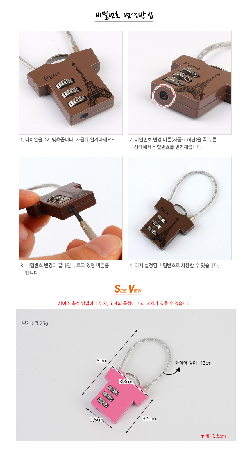 - Lock Type: Combination