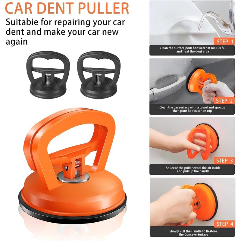 COMBLU Dent Puller, 2PCS Car Dent Puller Dent Remover Tool for Car Dent Repair, Glass, Screen, Tiles Lifting and Objects Moving, Orange & Black