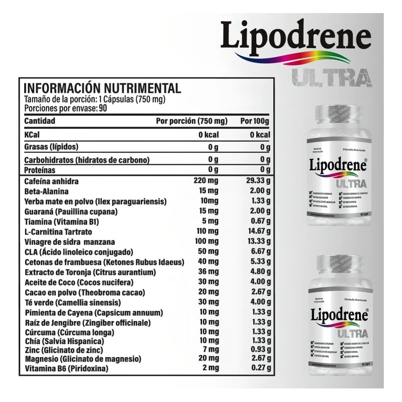 Combo 2 Lipodrene Ultra Termogénico Alta Acción 90 cápsulas. Sin Sabor.