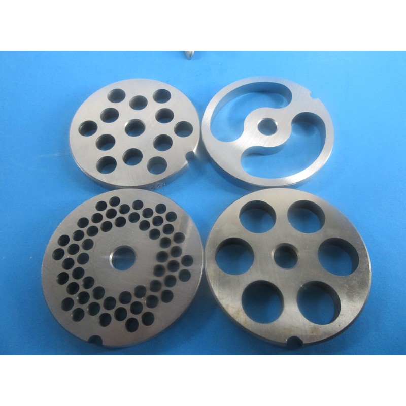 - 4) size # 22meat grinder plates 1/4", 1/2", 3/4" holes for grinding plus the 2-hole sausage stuffer disc