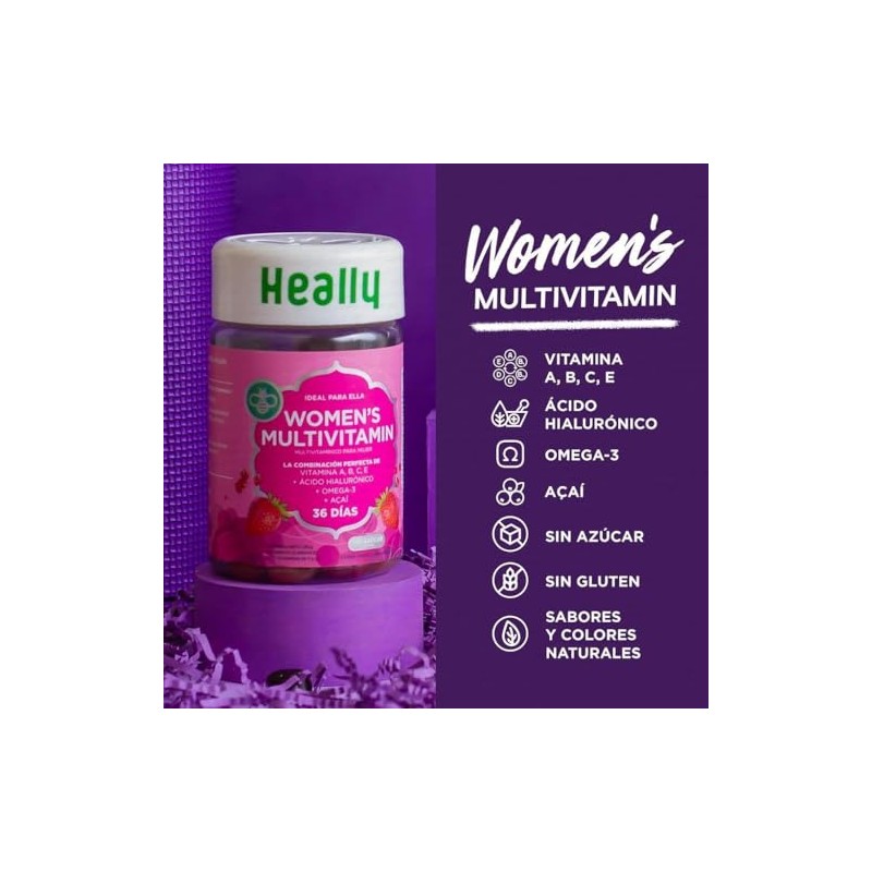 Combo Familiar Heally - Omega-3 y Probiticos, 72 Gomitas por envase, Mora Azul Mujer - Energa con cido Hialurnico, Fresa y Granada Nios -...