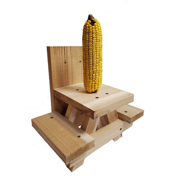 Combo Picnic Table Squirrel Corn Cob Feeder and Bulk Corn Cobs 25 Pounds for Squirrels, Deer