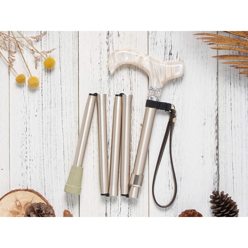 [Combo Set] Merry Sticks Designer Folding Adjustable Walking Cane, Royal Champagne Gold with 51pcs European Crystals