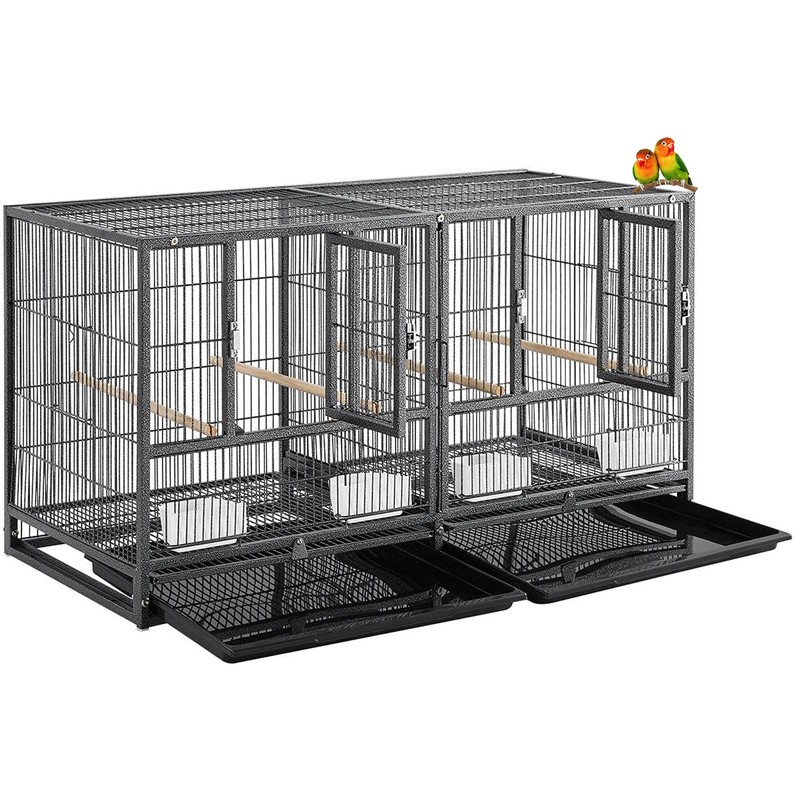 Combo Stacker Center Divided Breeder Breeding Bird Flight Double Rolling Cage for Aviaries Canaries Cockatiels Lovebirds Finches Budgies Small Parrots (BlackVein, One Stacker Without Stand)