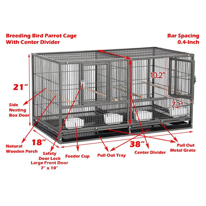 - This Double Breeding Cage Measures: 38’’ Long x 18’’ Wide x 21’’ High