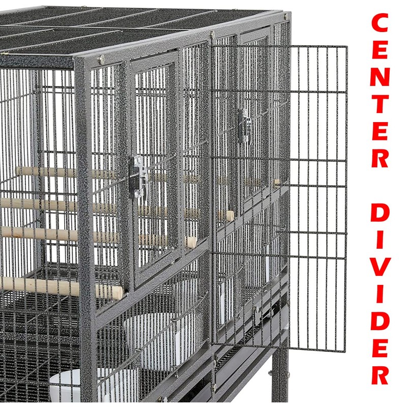 - Center Divided Breeding Cage With Two Front Swivel Out Door and Safety Lock Set. Side Breeding Nest Doors Included.