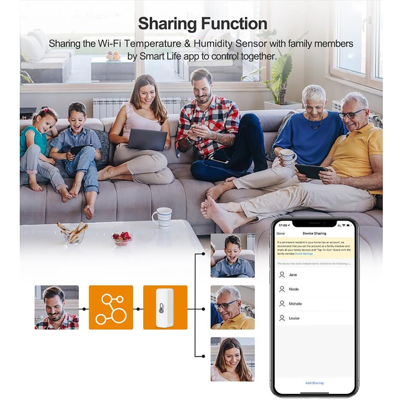 - Realise automation: Use a 2.4G Wi-Fi network, just set up WiFi, scan the device automatically and add Bluetooth after switching on via the Tuya app. The smart hygrometer thermometer monitor sensor can be used as a data source for temperature and humidity from Tuya Smart, Smart Life, Amazon Alexa and Google Home. You can perform many automated processes based on the data source