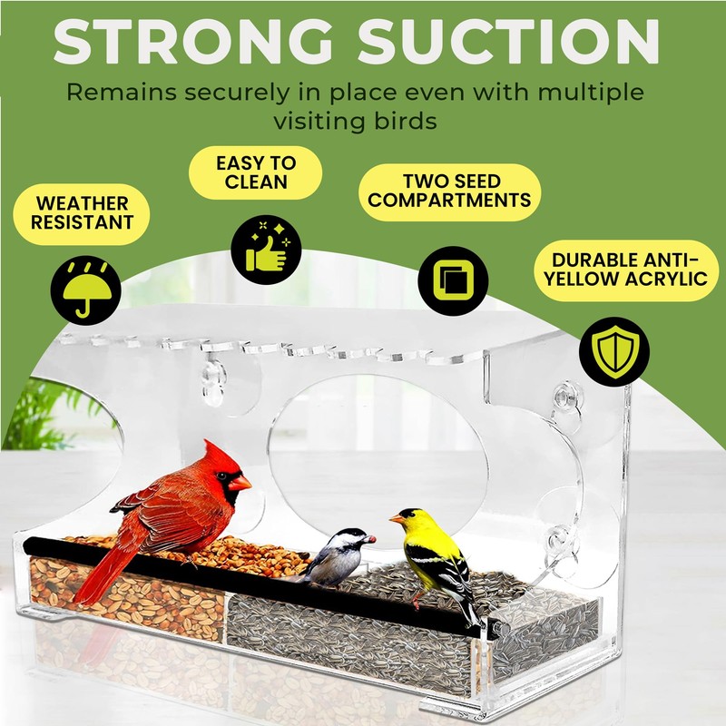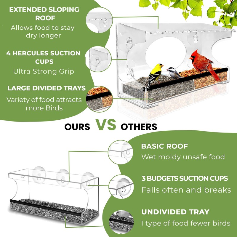 - ✅ Satisfacción garantizada: tu felicidad es nuestra primera misión a considerar. Ofrecemos una garantía de satisfacción 100% donde disfrutas del aspecto y el vistazo de los pájaros en nuestro comedero de pájaros de ventana premium para exteriores.