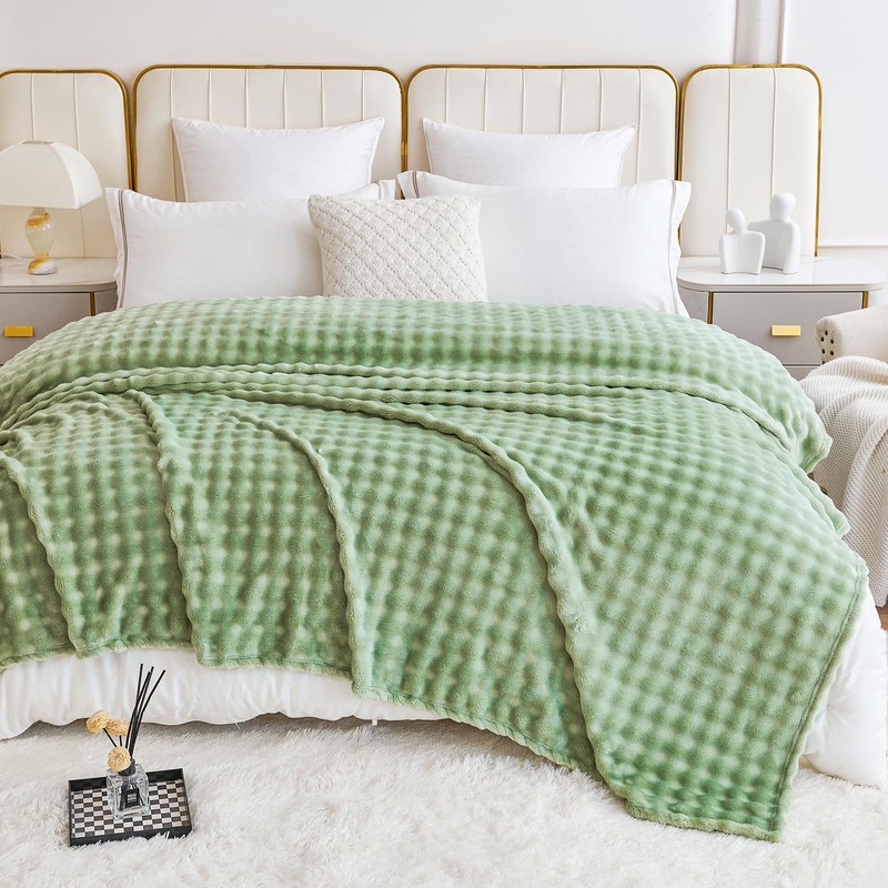 Comelady Fleece Throw Blanket,Super Soft Throw Blanket for Couch,3D Bubble Warm Fluffy Blanket for Bed Sofa Room Decor-Lightweight Cozy Fuzzy Blanket for All Seasons(Sage Green,50"×60")