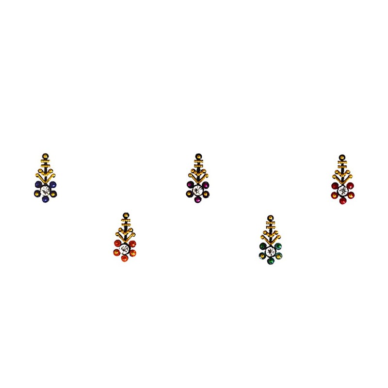 Comet Busters Fancy Multicolor Bindi With Silver Stone and Gold Beads (BIN795)