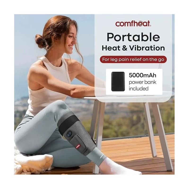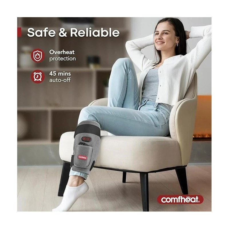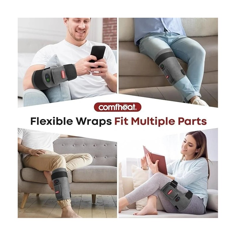 comfheat Cordless Leg Heating Pad with Vibration for Pain Relief, Wearable Wrap Around