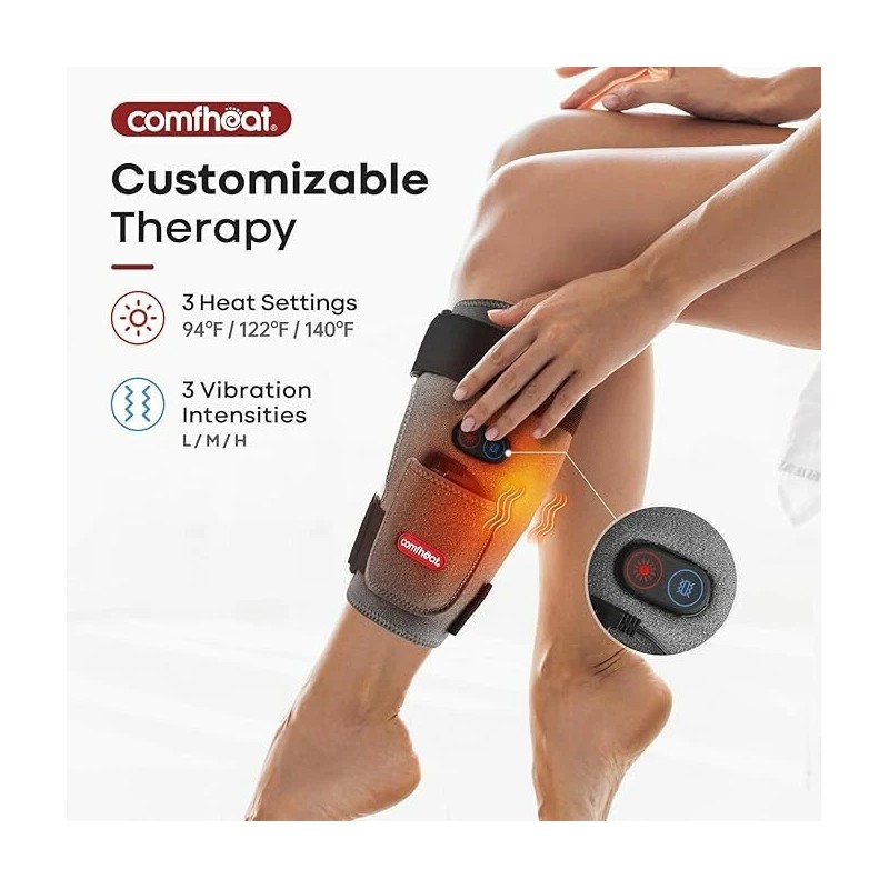 - Targeted Pain Relief with Heat and Vibration: Relieve calf, knee, thigh and shin splint discomfort with 3 adjustable heat levels (104℉, 122℉, 140℉) and 3 vibration intensities. Perfect for relieving muscle tension, joint stiffness, and helps recovery after workouts or long days