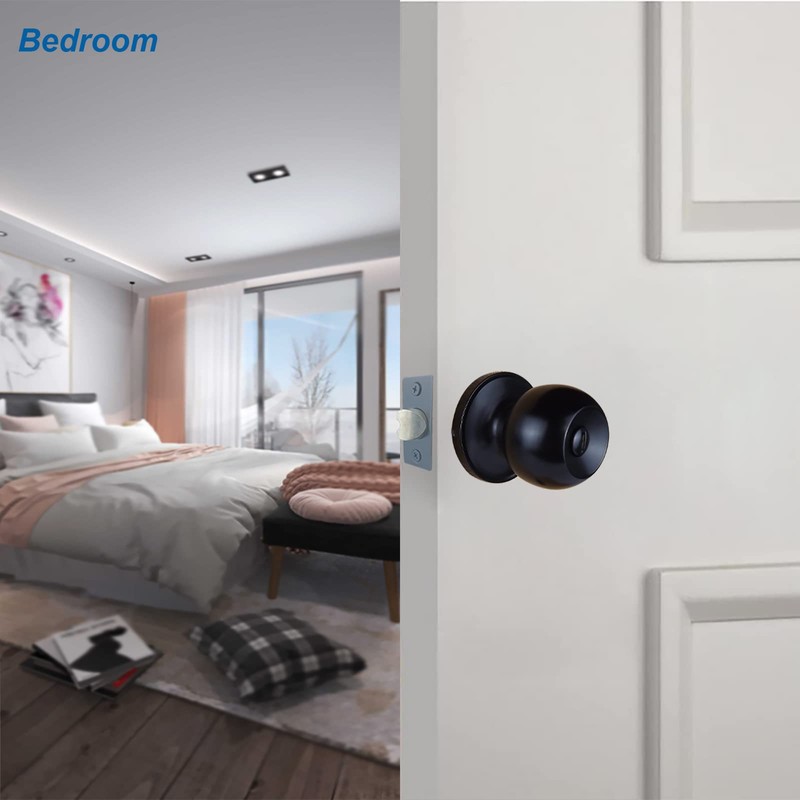 - FUNCTION: Privacy door knob is keyless, fit for interior doors such as bathroom or bedroom, and has a slot on the outside knob that can be unlocked with a screwdriver or coin in an emergency.Fit for right and left swing doors.