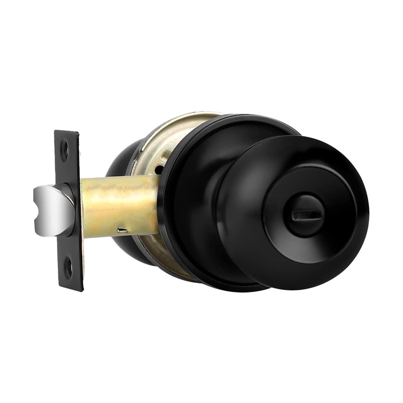 Comfhouse Round Ball Privacy Door Knob for Bedroom and Bathroom, Keyless Interior Door Knob with Lock, Stainless Steel Indoor Door Knob, 1 Pack (Matte Black)