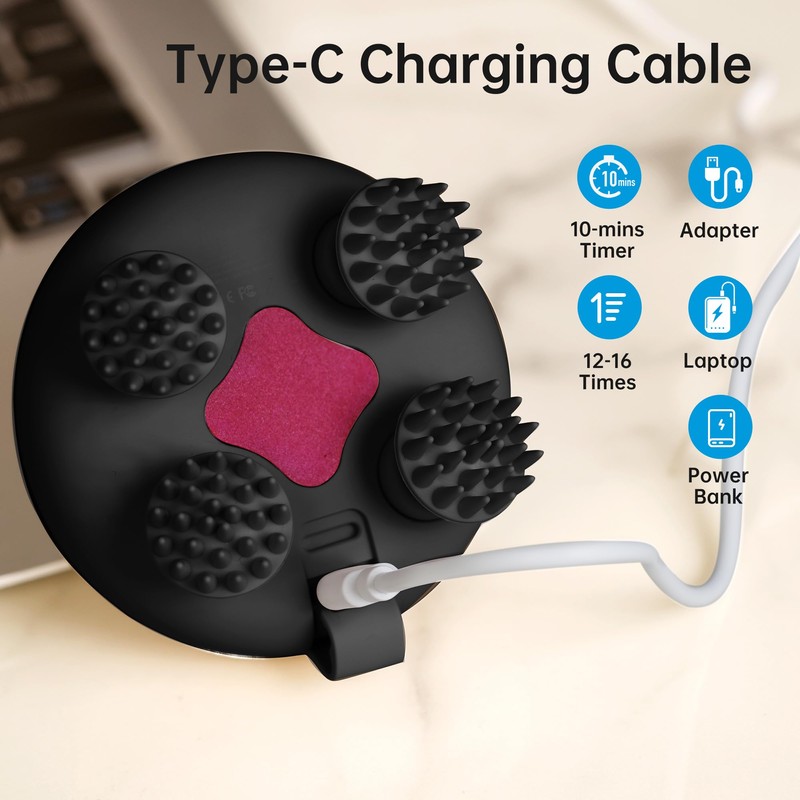 - 【 Cordless & Compact Design 】Comfier head scratcher is compact and lightweight, weighing just 0.7 pounds, making it easy to carry in a handbag for soothing massages anytime, anywhere. Its convenient USB charging provides continuous use, while the smart 10-minute auto-stop feature ensures a safe massage experience. It is an ideal gift for Christmas, Valentine’s Day, birthdays, Father’s Day, and more—perfect for men, women, dads, moms, friends, or even pets.