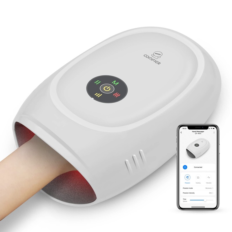 COMFIER Hand Massager for Arthritis and Carpal Tunnel,Gifts for Mom,Dad,Him,Her,Electric Hand Massager with Heat and Compression,Rechargeable & Portable,Carpal Tunnel Massager,APP Control,White