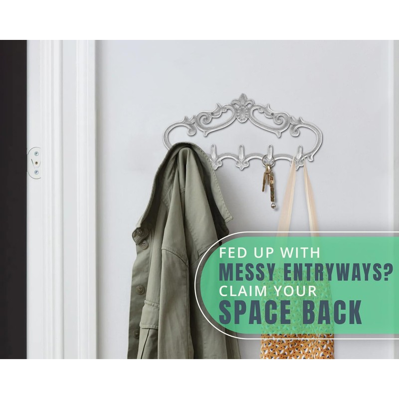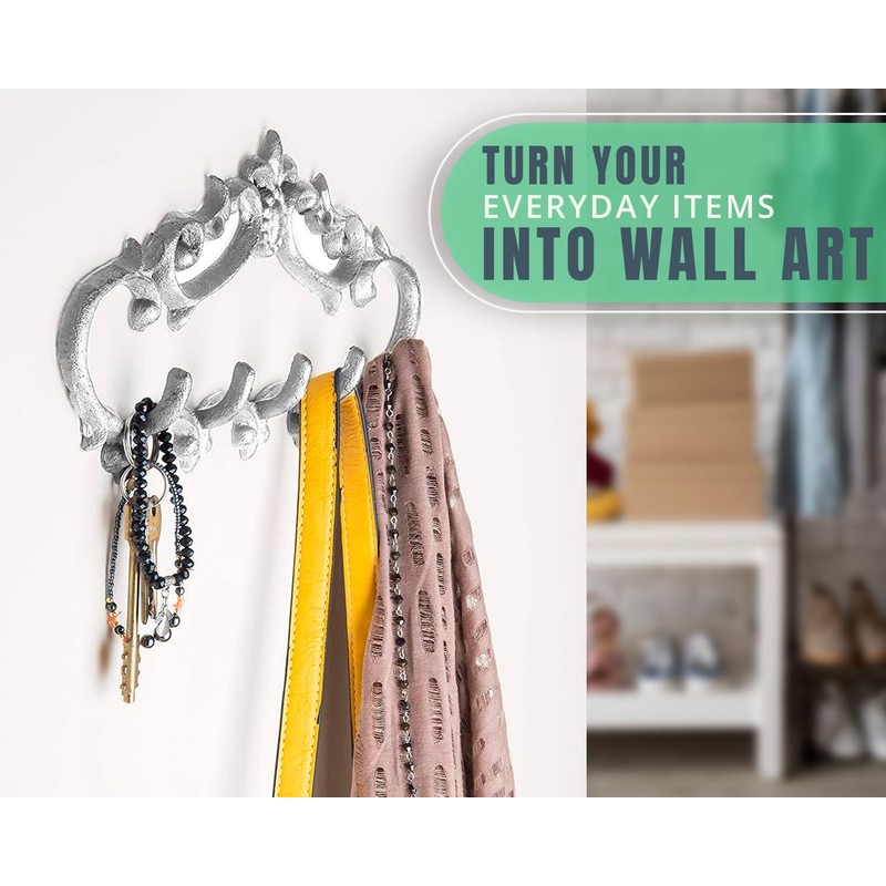 - Diseño clásico y único: nuestros ganchos de montaje en pared pueden ser una gran adición a la decoración de tu hogar. Esto se debe a su diseño detallado que puede caber bien en la entrada de tu hogar, puerta delantera o espacio de pared. Simplemente captura la atención de cualquier persona que la vea. Nuestros ganchos de pared tienen un toque clásico. Son muy atractivas y hacen que tu almacenamiento se vea muy encantador. Esta solución de almacenamiento es la manera de sorprender a tus invitados cuando quieran colgar su ropa, bufandas, sombreros y abrigos.