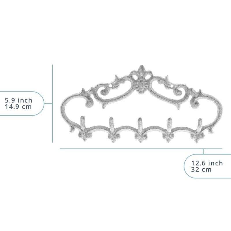 - Ganchos de pared de hierro fundido para tu hogar: cuelga tus abrigos, chaquetas, sombreros y más con estilo con este producto decorativo de organización del hogar. Utiliza estos ganchos decorativos de pared de hierro fundido para tu puerta, pasillo, sala de estar. Cuelga tus toallas y batas en tu baño. Este colgador de pared tiene 5 ganchos. El colgador de pared de hierro fundido mide 12.6 pulgadas de ancho por 5.9 pulgadas de alto.