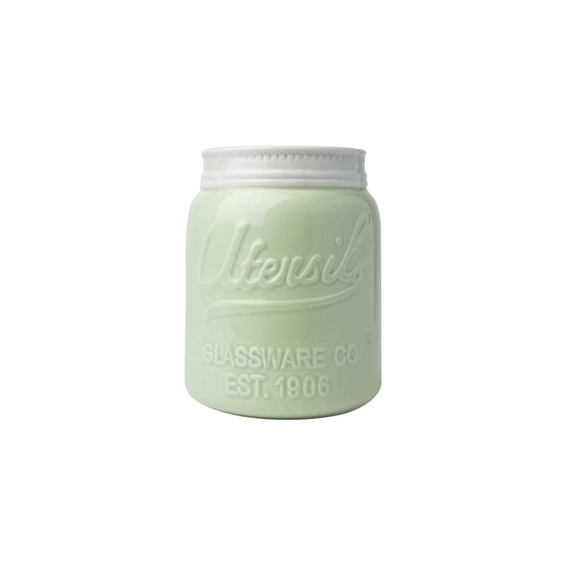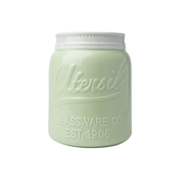 Comfify Wide Mouth Mason Jar Utensil Holder Decorative Kitchenware Organizer Crock, Chip Resistant Ceramic, Dishwasher Safe - Green Kitchen Caddy, Large Size 7" High