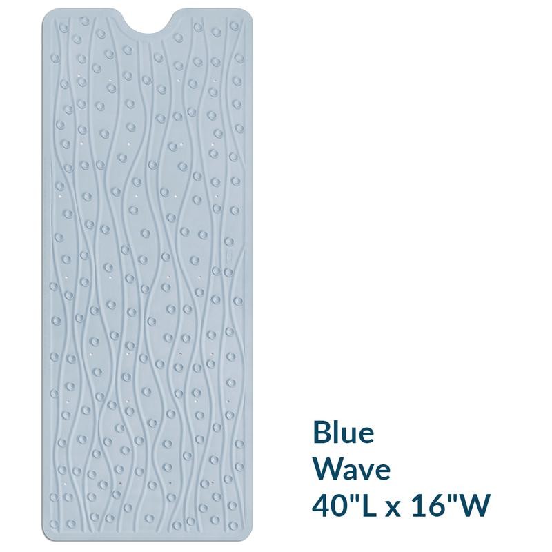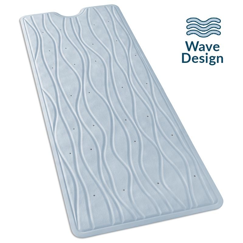 ComfiLife Anti Slip Natural Rubber Bathtub Shower Mat with Drainage Holes and Powerful Suction Cups 16" x 40" Wave Design BPA Latex Free bath rug - Color: Light Blue
