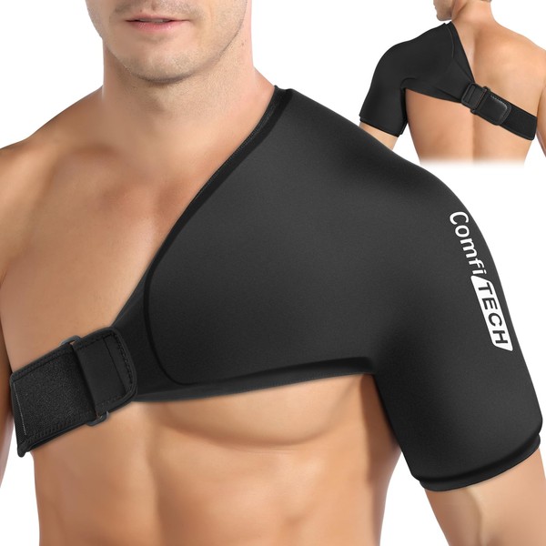 - Easier to Putting On & Off - ComfiTECH upgraded shoulder ice packs features a longer adjustable strap, allowing you to customize the cold compression on your chest. The thoughtful design make it more easier to use and provide a secure hold, most people can wear the cold pack for shoulder alone. The flexible soft gel and stretchable lycra fabric ensures a comfortable fit for targeted from shoulder replacements, shoulder sprains and strains, torn rotator cuff, and biceps tendon.