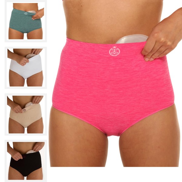 Comfizz Ostomy Level 1 Support Briefs: Women’s, High Waist, Light Support Ideal for Post Surgery (L/XL, Pink)