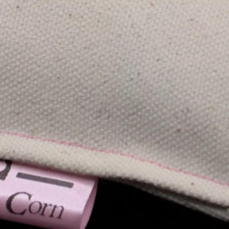 Heating Corn Bag, medium size (6 inches x 6 inches). Natural canvas with pink stitch, organic apple space scent. Microwave to add heat, and re-use as many times as many times as you want. Hand-made in South Carolina, USA.