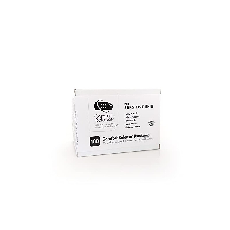 Comfort Release® 1" x 3" (Box 100) Sensitive Skin Bandages for Wound Care & First Aid with Painless Removal (When Used as Directed)