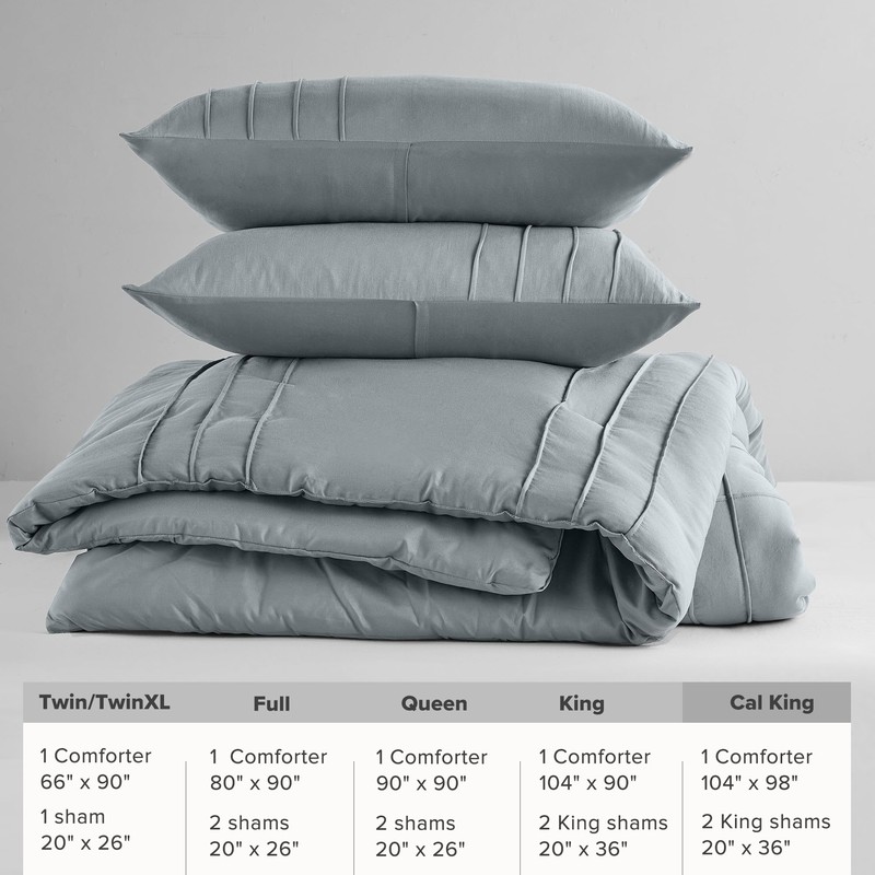 Comfort Spaces Blue/Grey Cal King Size Comforter Set - 3 Pieces Pintuck Pleated Bedding Sets Cal King, All Season Lightweight, Extra Softness Pre-Washed Microfiber Cal King Bed Set, Shams, Cal King
