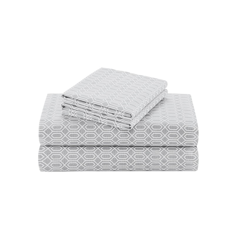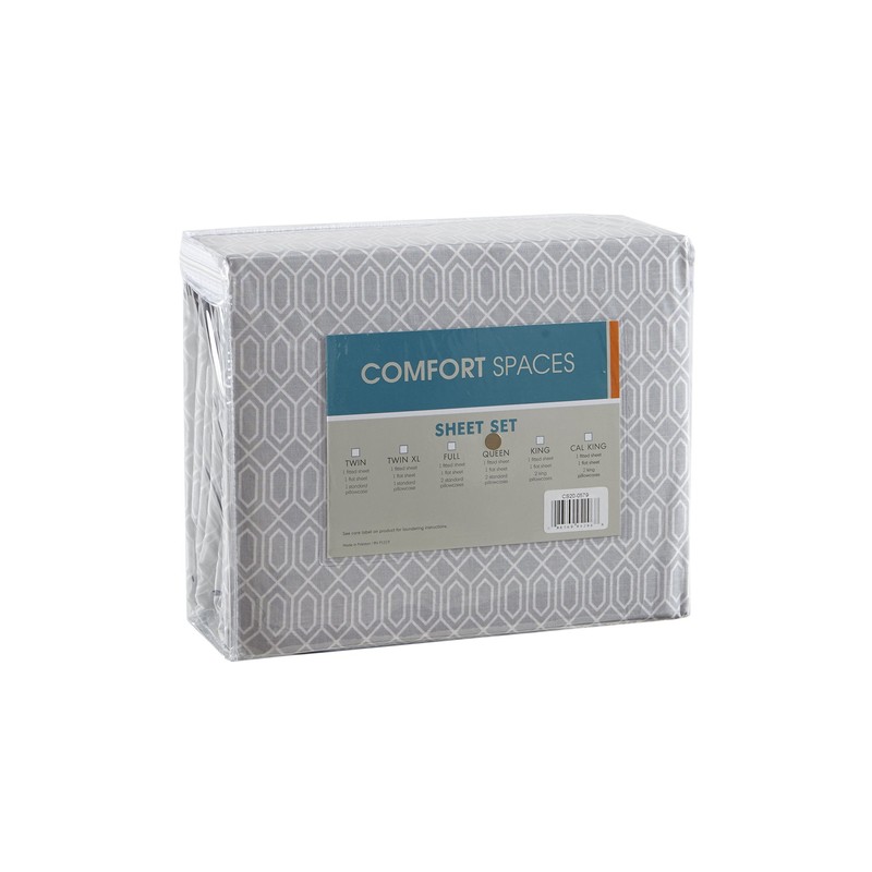 COTTON PRINTED SHEET SET - Sleep in style with the Comfort Spaces Diamond Cotton Printed Sheet Set. This cotton sheet set features a Diamond printcreating an elegant look. Soft and comfythe deep pocket fitted sheet fits mattresses up to 16-inches deep. Made with 144 thread count cottonthis sheet set is machine washable for easy care. Set includes: 1 Flat Sheet1 Fitted Sheetand 2 Pillowcase. SERVICE - If you don't absolutely love this productreturn it within 30 days for a full refund. We'll work with you to resolve any issue and ensure that you're satisfied with your experience.