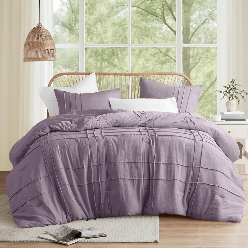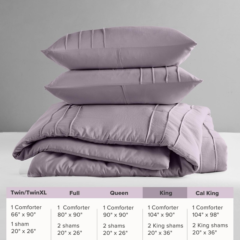 Comfort Spaces Purple King Comforter Set - 3 Piece Pintuck Pleated Bedding Set, All Season Lightweight, Extra Soft Pre-Washed Microfiber Bed Set, Shams
