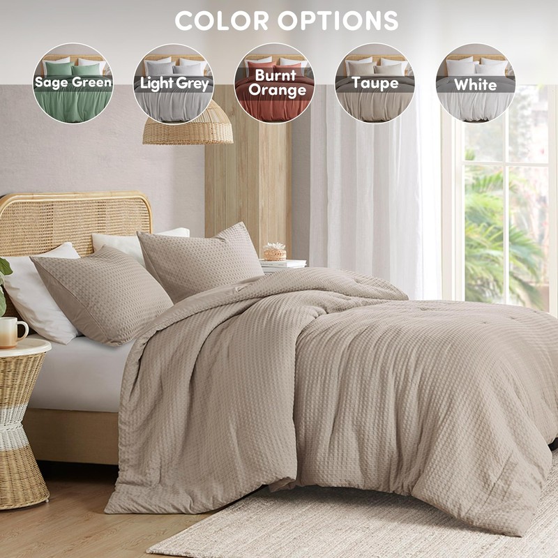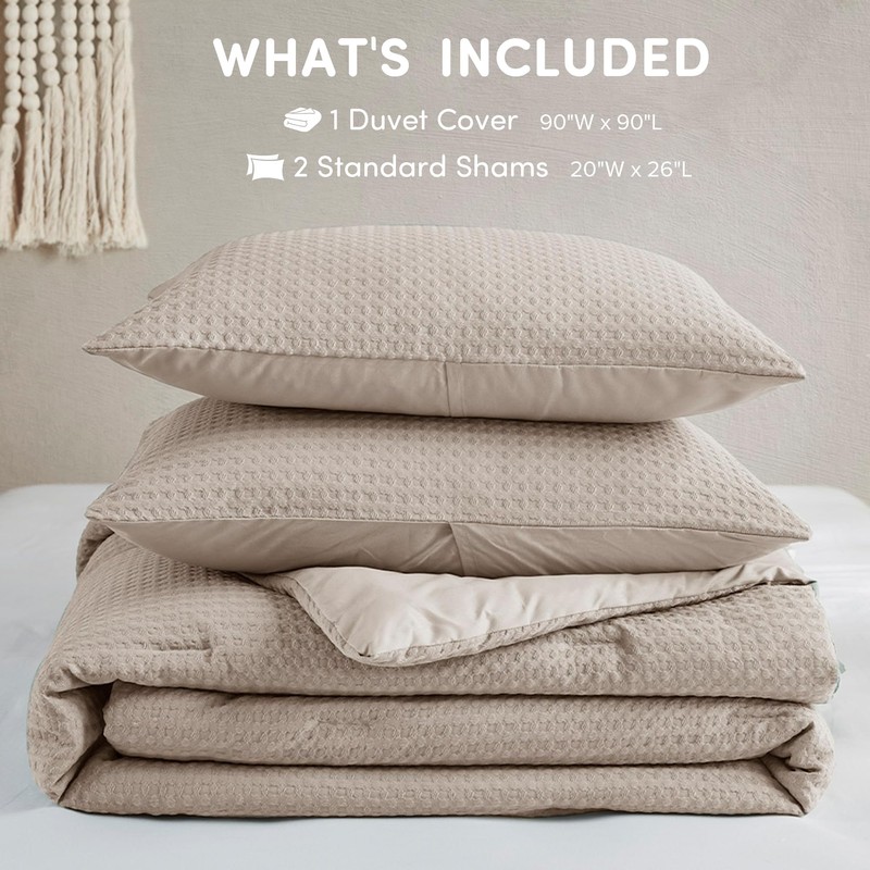 Comfort Spaces Taupe Queen Duvet Cover Set - 3 Pieces Breathable Dotted Weave Texture Duvet Sets, Modern Farmhouse Boho Duvet Cover & Sham, All Season Microfiber Queen Bed Set, Full/Queen