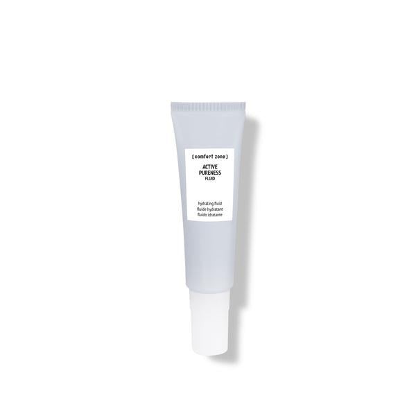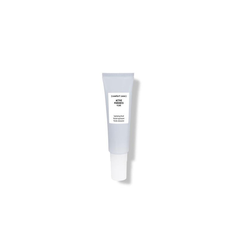 [ comfort zone ] Active Pureness Fluid. A unique hydrating and mattifying fluid, formulated with Vitamin C and matte powders as an ideal hydrating product or make-up base. For oily skins, recommended in hot, humid climates.