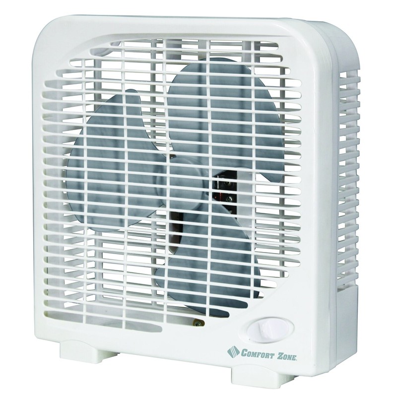 The Comfort Zone 9Portable box fan is perfect for your household. Features 2 Speed rotary control, automatic lubrication and reak resistant blade. Quiet operation and spt-2 power cord with molded plug. Comfort Zone is driven to perfection producing quality products for everyday living.
