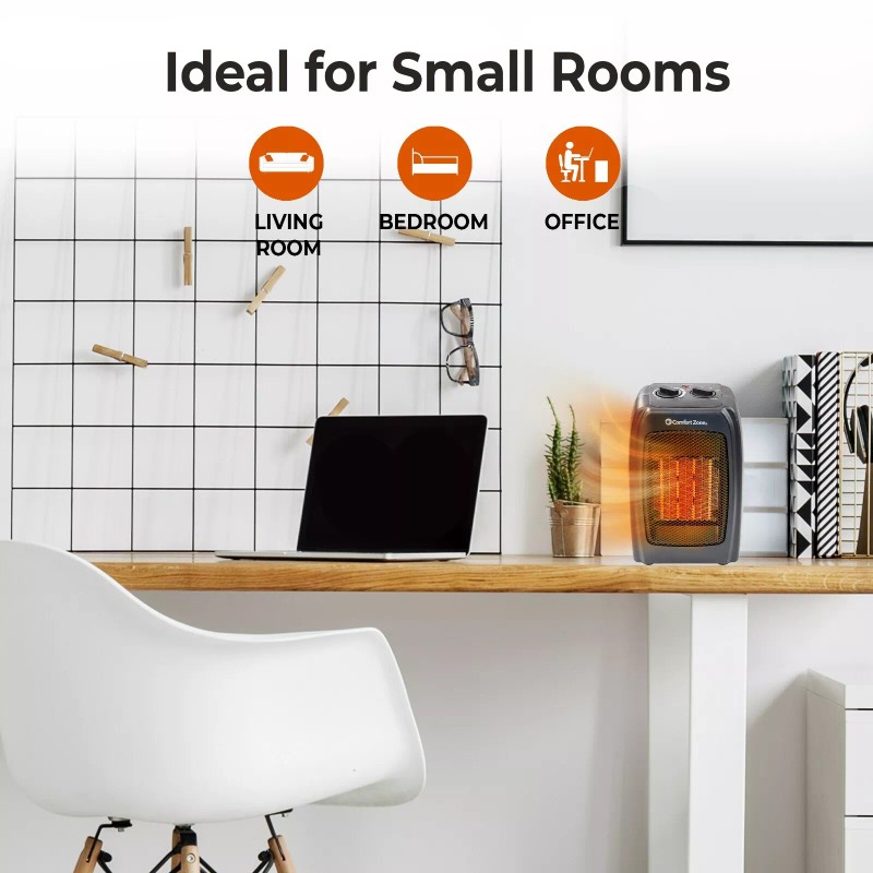 Comfort Zone Desktop Space Heater with Energy Save Mode, Tip-Over Switch, Black